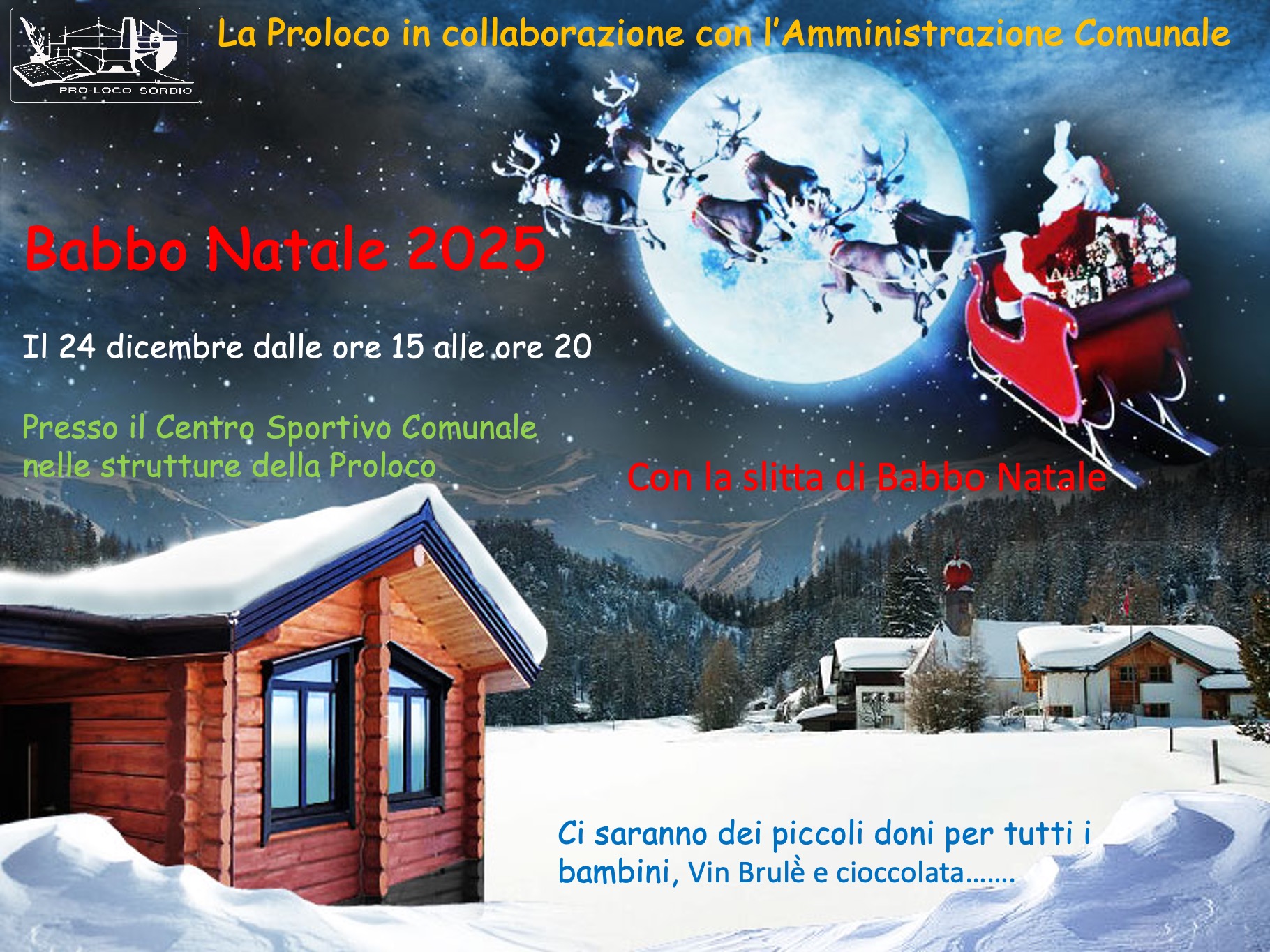 Babbo Natale, vi aspetta Presso il centro sportivo Comunale